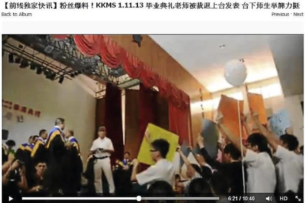 KOTA KINABALU, Nov 3: A convocation for seniors at an independent Chinese school here was disrupted when a group of students marched into the hall protesting against the dismissal of 10 teachers.